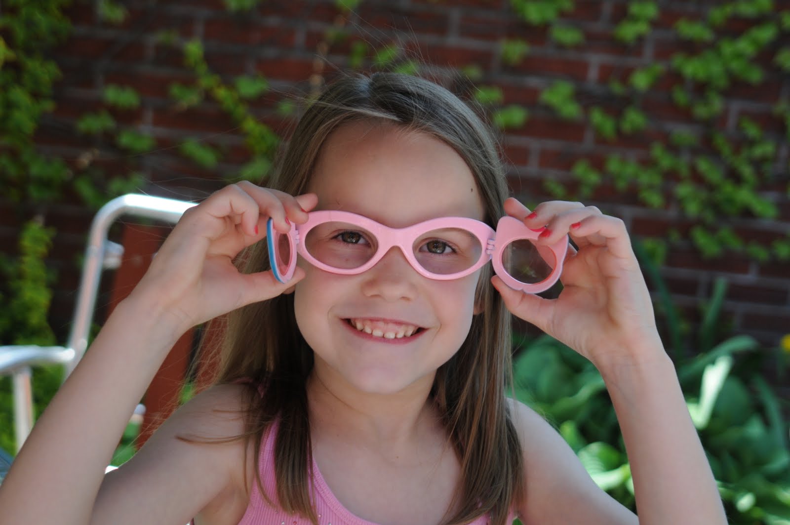 Which means the kids are out and enjoying it! We hit the Essexville garage sales this weekend and Ella found these amazing sunglasses that she just can't take off!